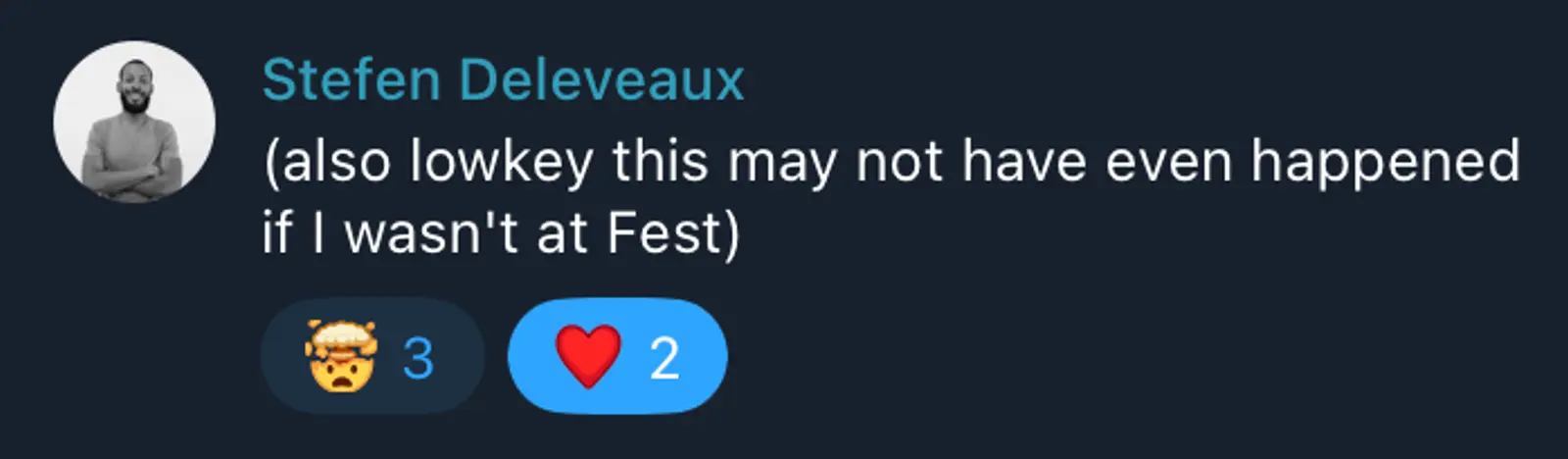 My experience at FEST was actually what gave me both the final push and the blueprint for Oasis. I was already slowly trying to plan it out and I’d already had a number of convos with friends about what it could potentially look like, but after seeing the talks and panels, getting even more excited about consumer crypto (shoutout to Seed Club [pictured below]), and just enjoying the casual/intimate nature of the event overall, it was the confirmation that I had to make Oasis happen, and that I wanted it to have a somewhat similar feel to FEST, of course with its own island flavor.