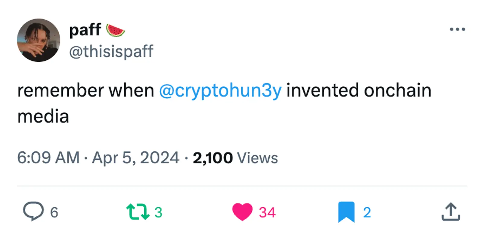Putting media onchain will similarly disrupt our existing trad social distribution channels. It creates even more direct relationships between brand and consumer, creator and fan, all while generating revenue. Think of this as an actual return on ad spend, making marketing a significant revenue center for the first time in history. It’s already happening, but we still have a long way to go to make this future fully realized. That’s wildly exciting to me.