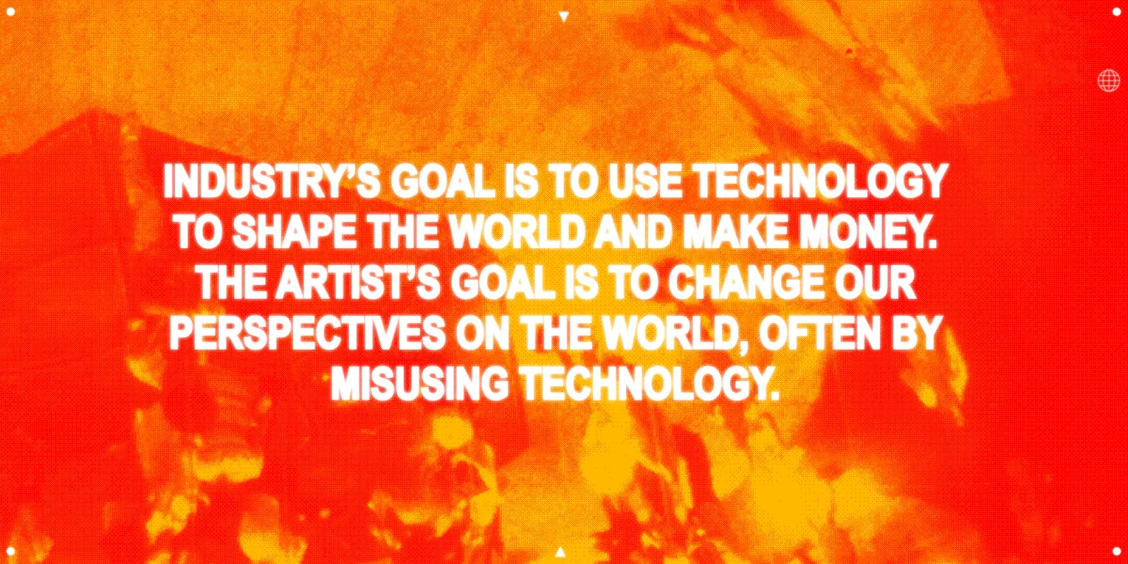 From the dawn of digital technologies to the hype-driven digital art world of the present, the history of art and technology tells the same story over and over again. Artists are often faced with a choice: Carry on making subversive work with little financial return, submit to the pressures of market forces, or act as R&D for a corporation. More often than not, we see art working in the service of industry. But what if it were the other way around? What if we lived in a world where industry felt a responsibility to support artistic exploration — where the productive forces of technology and the subversive forces of art worked together in the interest of mutual transformation?