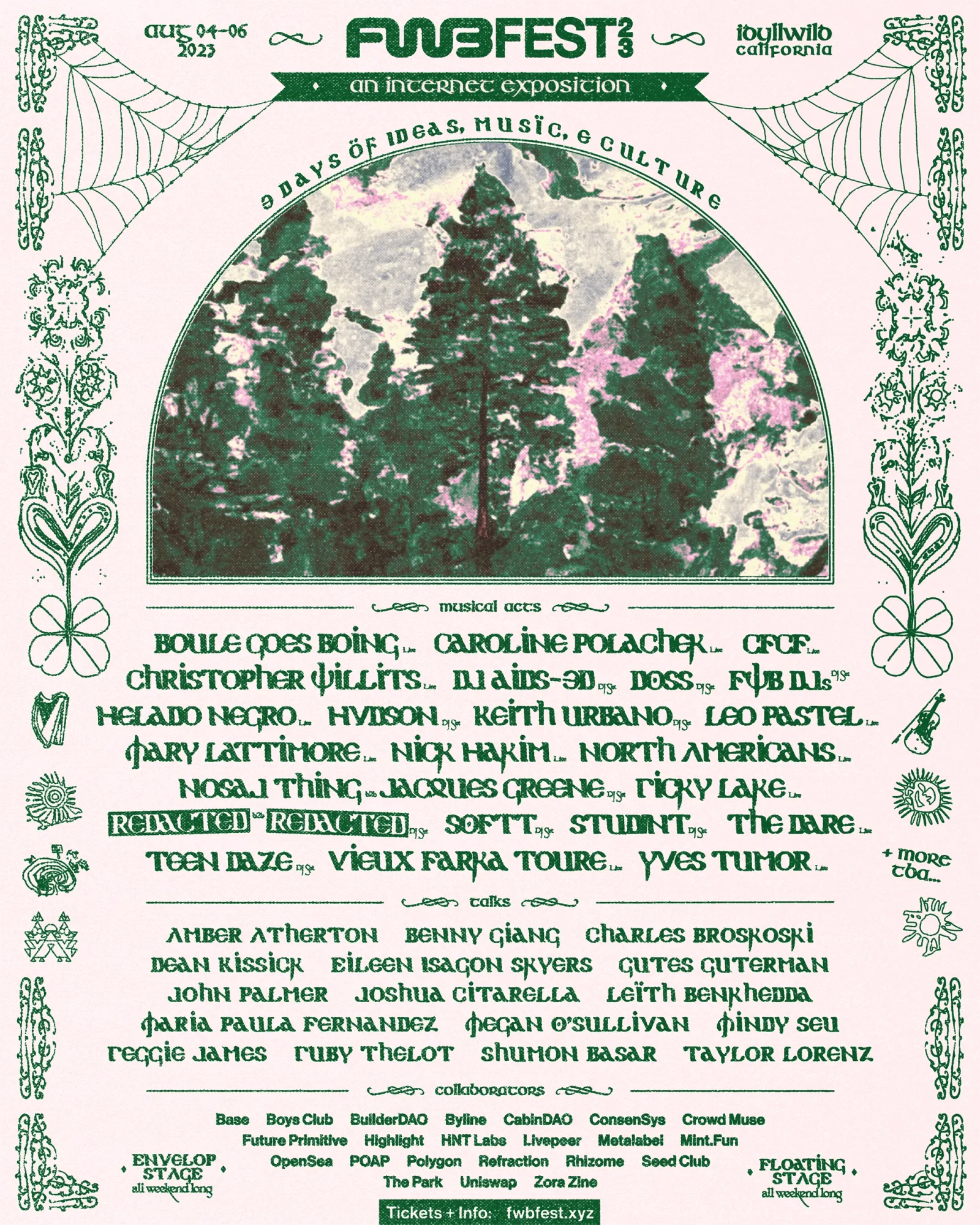 This August, FWB will be joined by collaborating communities including Uniswap, Boys Club, Seed Club, Metalabel, Builder DAO, The Park, Basic Space, Rhizome, Base, mint.fun, POAP, Polygon, Refraction, HNT, Zora Zine, Byline, and OpenSea. Each organization has been working with us directly to bring their own unique flavor and ideas to FEST. As a few examples of our collaborator programming, Seed Club will be hosting a “conference within a conference,” Basic Space will be creating FEST's own version of Shakedown Street, Metalabel will be running a zine-making workshop, and Zora Zine and Byline will be teaming up to host fireside chats focused on the future of web3-enabled artistic expression.