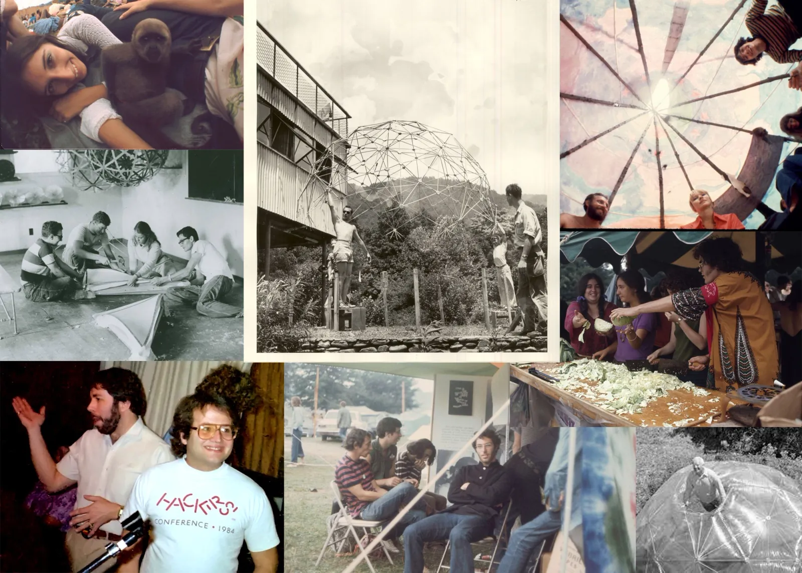 Images from subcultural gatherings that have inspired FEST, including Woodstock, Black Mountain College, and the 1964 Hacker’s Conference.