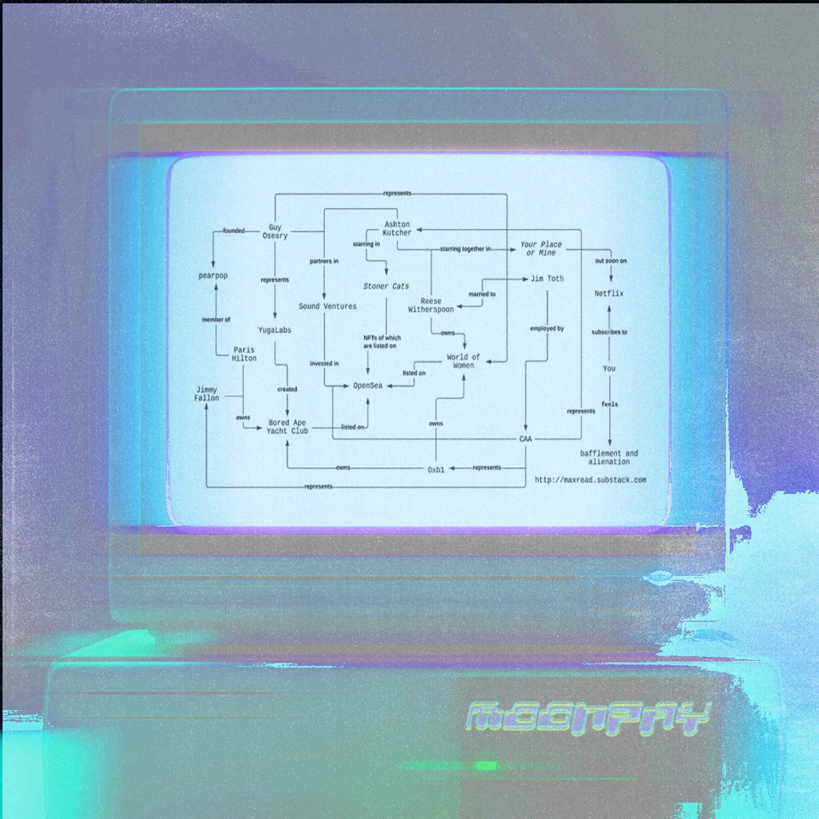 This past year, it seemed like all the biggest names in culture were getting into NFTs, often in a way that felt… forced. On The Tonight Show, Jimmy Fallon, and Paris Hilton had their famously stilted exchange about their Bored Ape buys, and a few weeks later, Gwyneth Paltrow unveiled a Bored Ape of her own on Twitter. Hilton and Paltrow are also on the list of MoonPay investors, along with Creative Arts Agency, which reps Fallon. And as the tangled web of celebrity NFT enthusiasts, investors, and owners grew increasingly tangly, people cried “conspiracy.” Indeed, Moonpay’s Series A announcement — which lists a total of more than 50 investors, including Blond:ish, Shawn Mendes, Steve Aoki, Post Malone, Lil Baby, Lil Durk, the Chainsmokers, Maria Sharapova, Paul George, Matthew McConaughey, G-Eazy, Jay Z’s fund Marcy Venture Partners, Stacey Bendet, Shay Mitchell, and Scooter Braun — conjures up a zig-zagging web of (probably coincidental) connections worthy of Pepe Silvia himself.