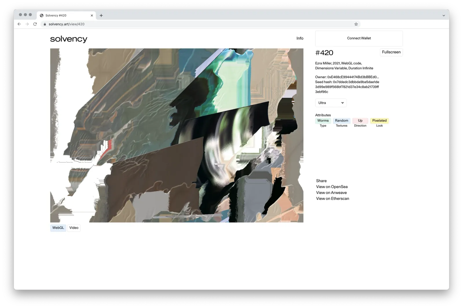 Lindsay Howard (Curator, Head of Community at Foundation): Solvency was one of the first collections we imported on Foundation because it introduced a new way of thinking about and creating NFTs. Ezra’s approach of incorporating the underlying technology and using it as a creative medium revealed more about the mechanics.
